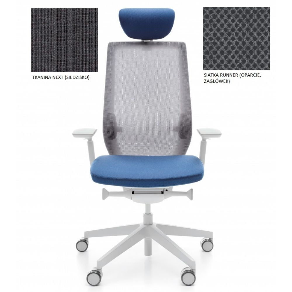 Dodatkowo, krzesło biurowe ergonomiczne może być wyposażone w zagłówek, który odciąża odcinek szyjny, szczególnie podczas fazy relaksu przy prawie poziomym wychyleniu oparcia.