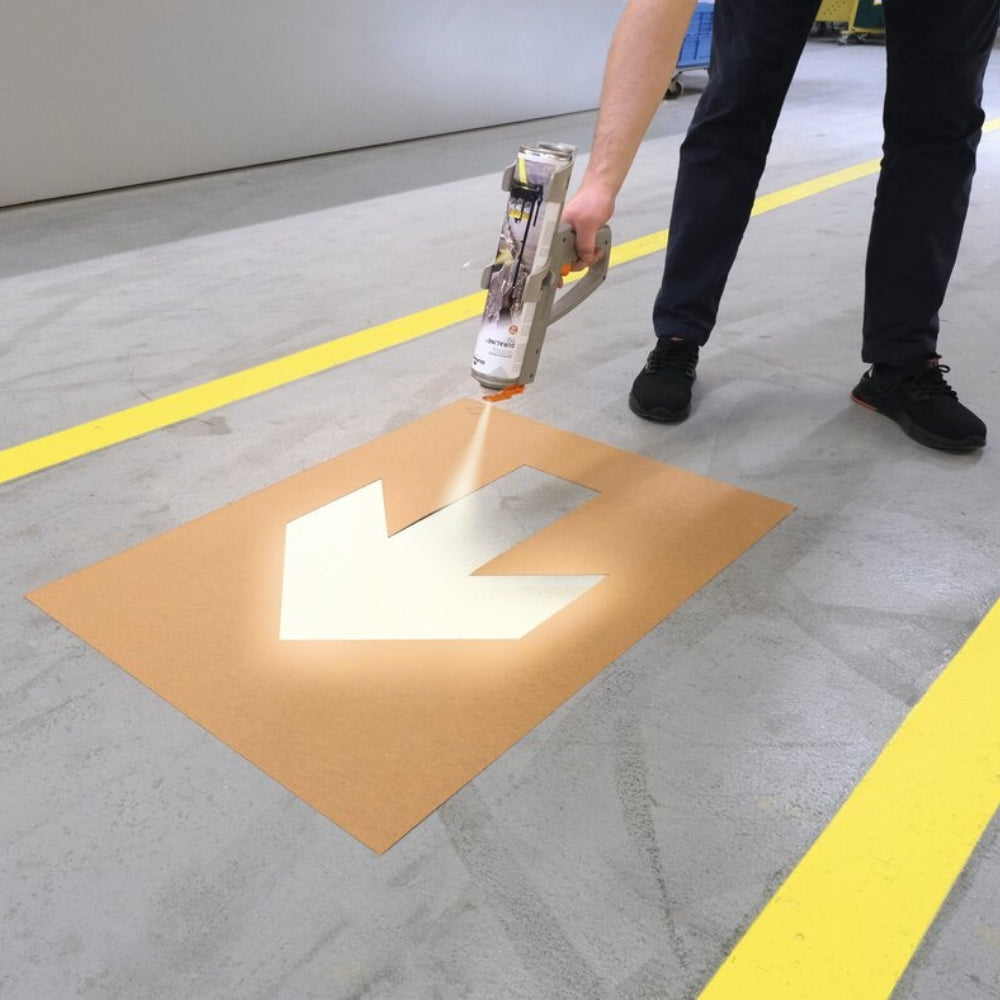 Pistolet do malowania linii Durable doskonale sprawdza się przy znakowaniu szablonowym oraz nanoszeniu linii w halach, magazynach czy na parkingach.