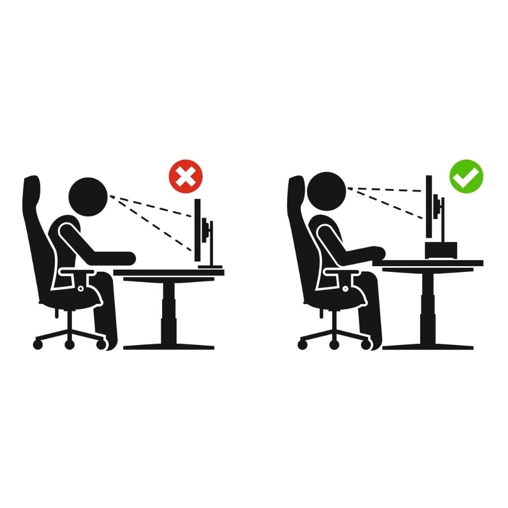 Podstawa pod monitor posiada trzystopniową regulację wysokości, dzięki czemu można ją łatwo dopasować do indywidualnych potrzeb, poprawiając ergonomię i zmniejszając napięcie karku oraz pleców.
