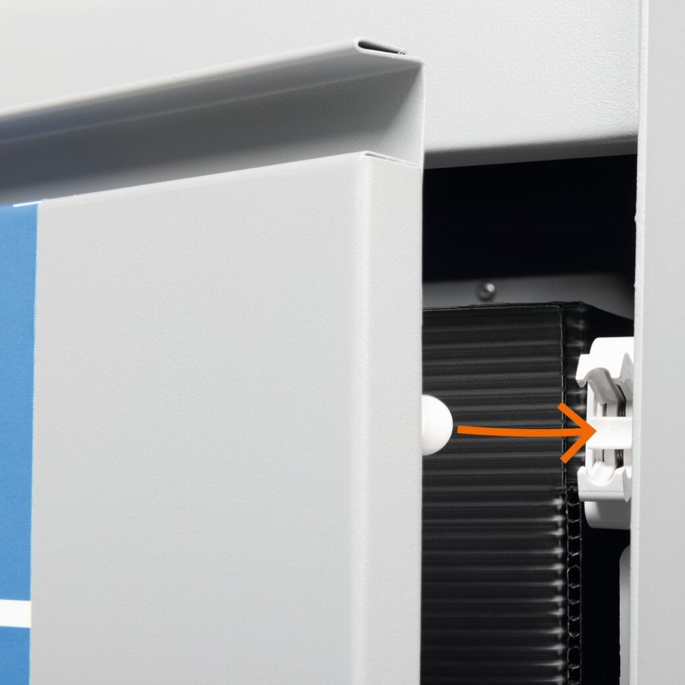 Drzwiczki otwierane mechanizmem push-to-open ułatwiają obsługę, a wyjmowany wewnętrzny kosz pozwala na szybkie opróżnianie i utrzymanie czystości.